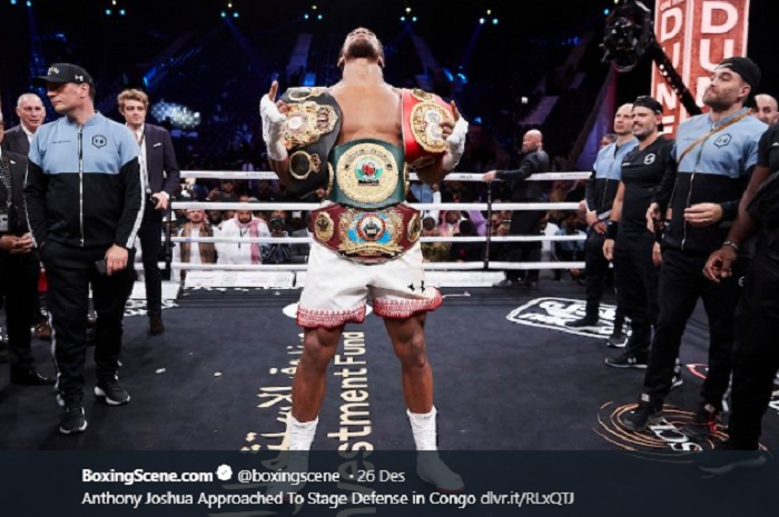 Anthony Joshua adalah petinju pemegang sabuk juara dunia kelas berat versi WBA (Super), IBF, WBO, dan IBO saat ini.