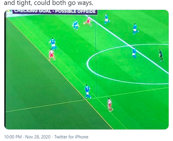 Wasit sebenarnya tidak menganggap insiden teresbut sebagai sebuah pelanggaran, namun petugas VAR merasa kalau kejadian itu perlu diperiksa kembali.