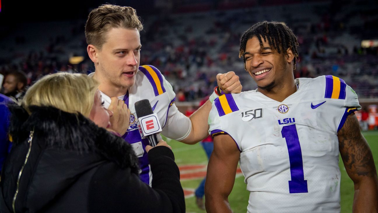 According to ESPN Stats & Info, the Bengals' selection of Chase is the first time in the common draft era that a team used top-10 picks on a QB-WR duo that played together in college.