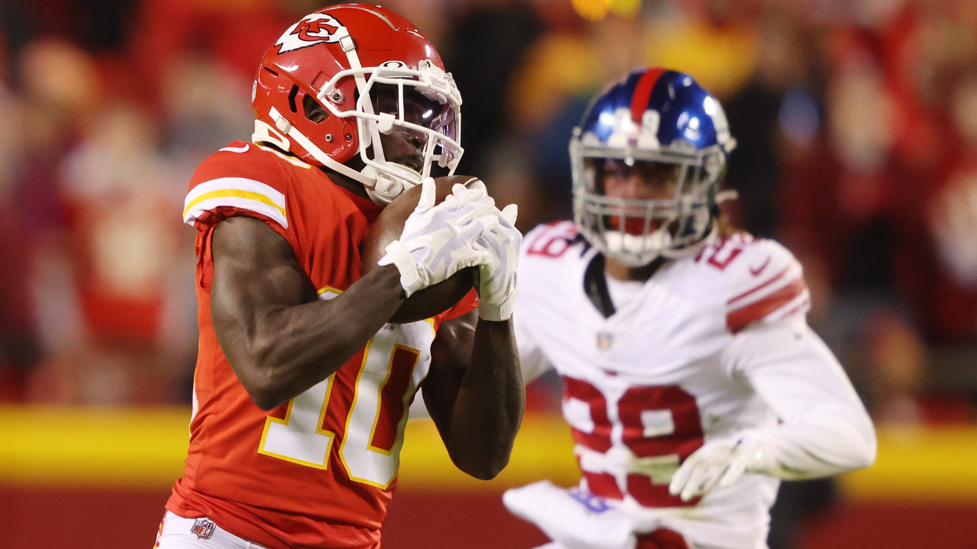 10:20 p.m.: Mecole Hardman with back-to-back catches of 9 and 12 yards. Second-and-1 from the Giants' 49.